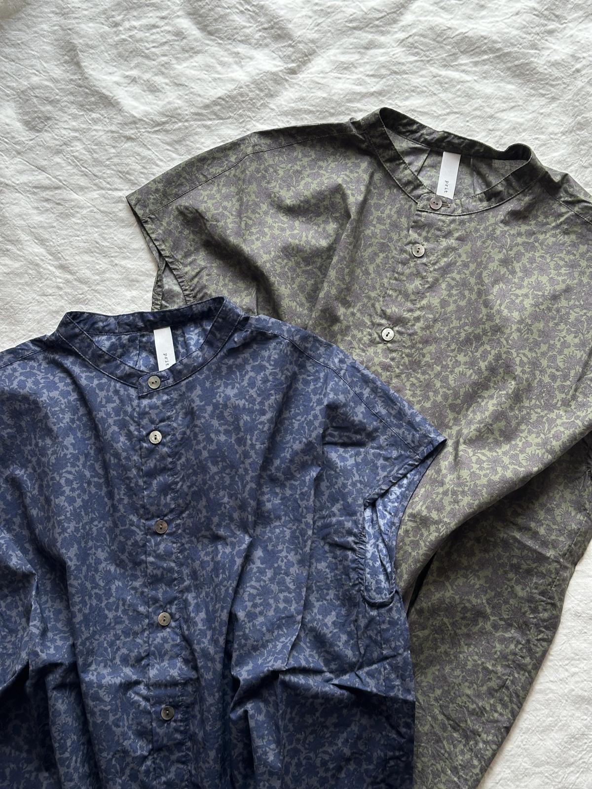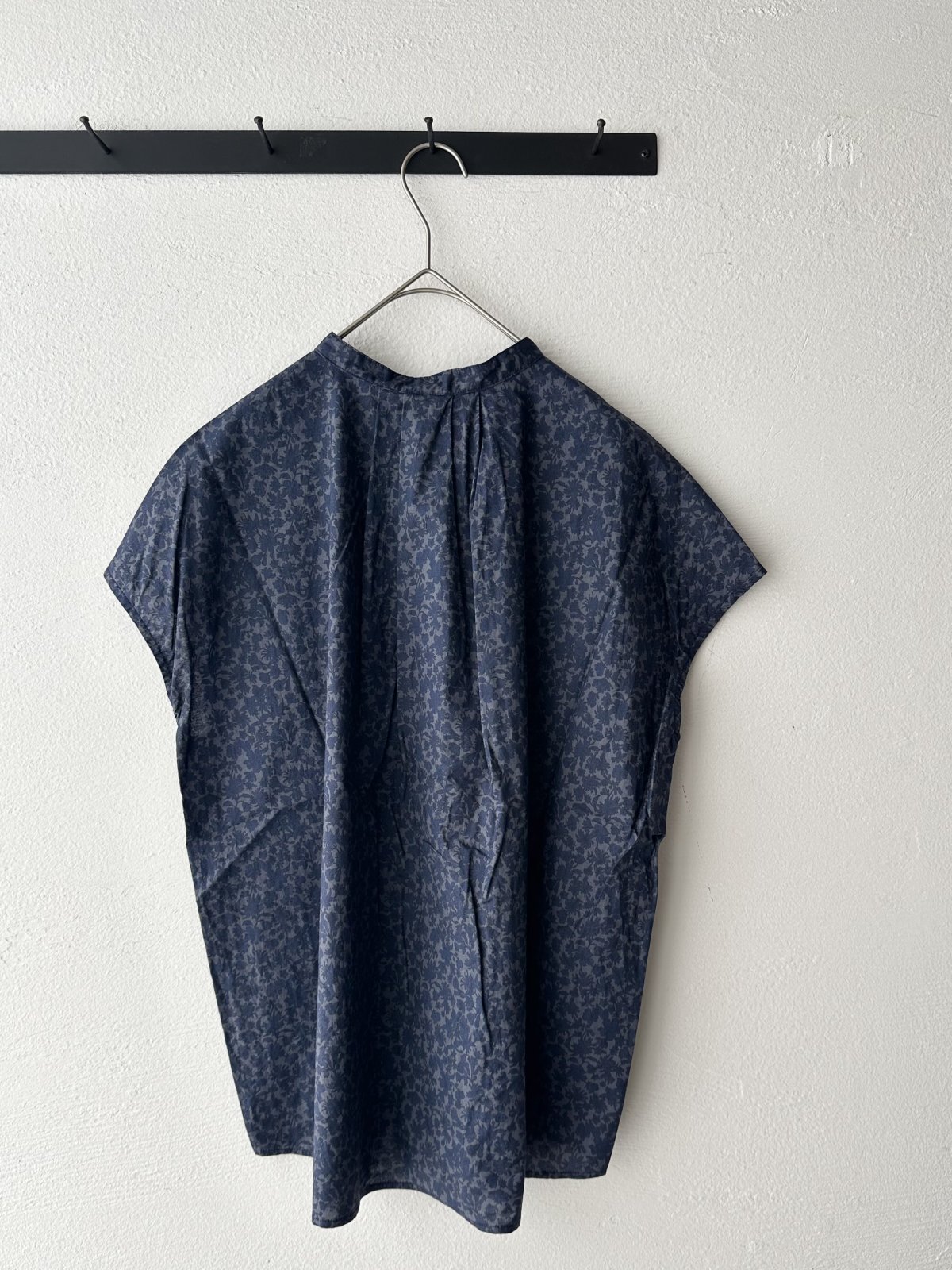 prit 80/1ローンボタニカルプリント スリーブレススタンドカラーシャツ【クリックポスト(185円)発送可能】